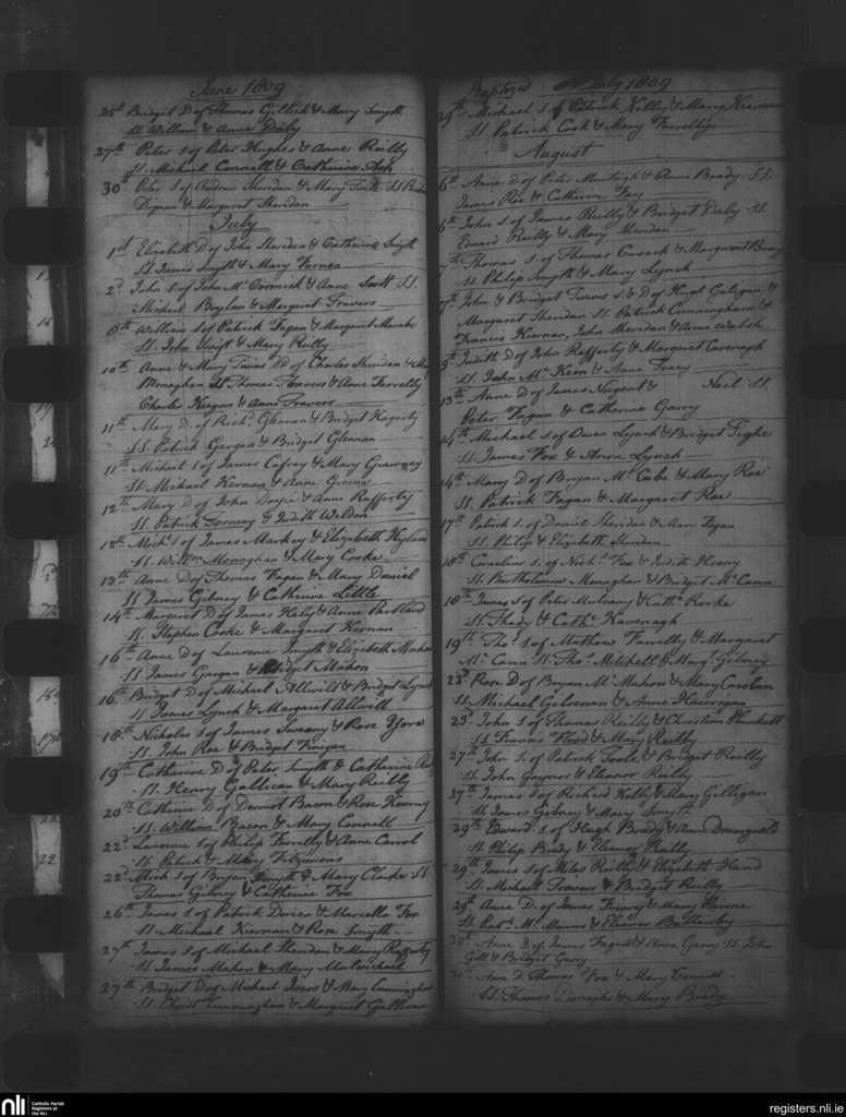 Oldcastle; County of Meath; Diocese of Meath. Baptisms, June 1809 to Aug. 1809
