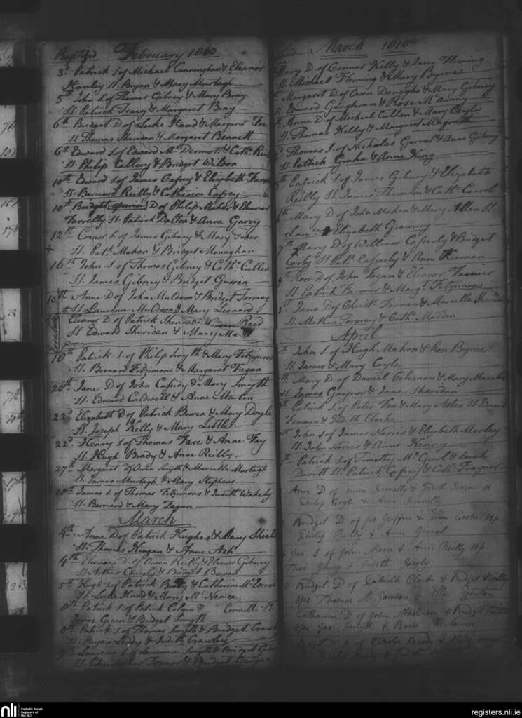 Oldcastle; County of Meath; Diocese of Meath. Baptisms, Feb. 1810 to Apr. 1810