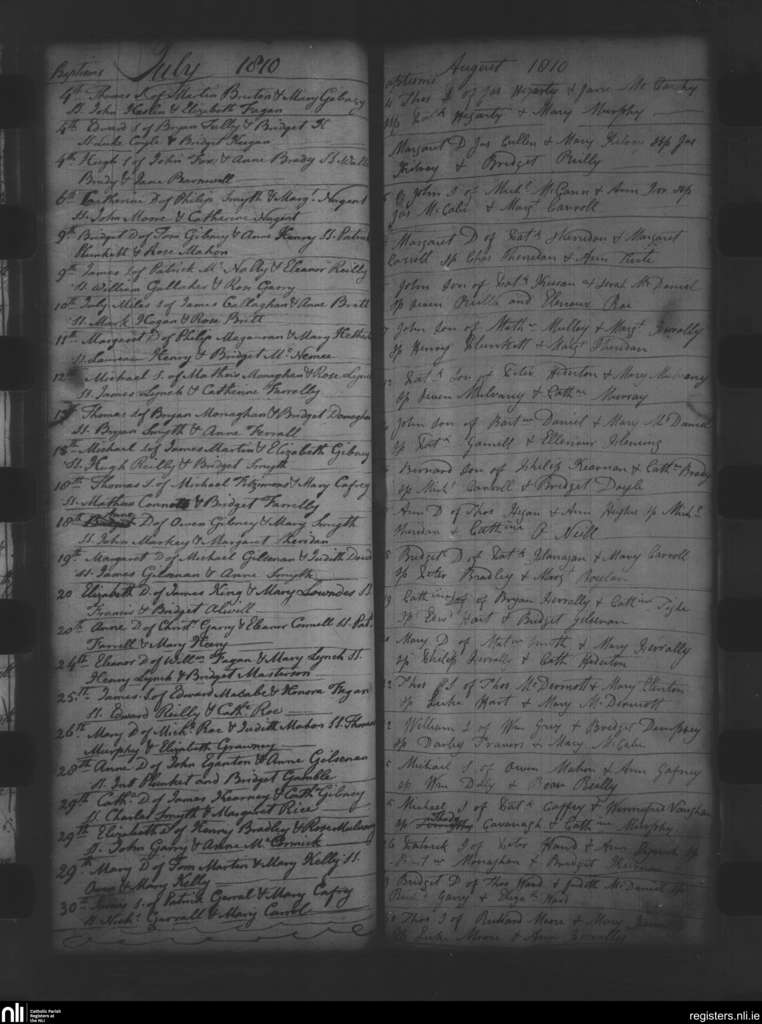 Oldcastle; County of Meath; Diocese of Meath. Baptisms, July 1810 to Aug. 1810