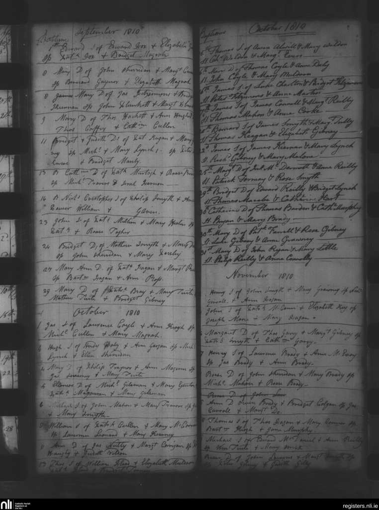 Oldcastle; County of Meath; Diocese of Meath. Baptisms, Sep. 1810 to Nov. 1810