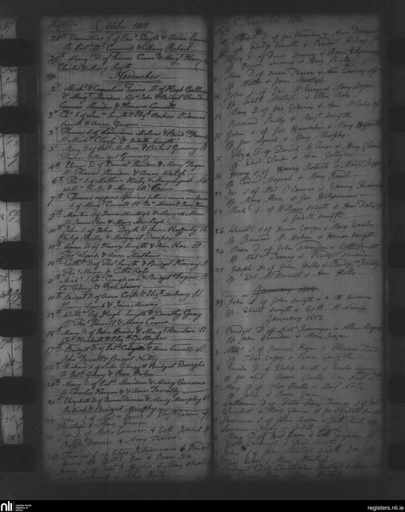 Oldcastle; County of Meath; Diocese of Meath. Baptisms, Oct. 1811 to Jan. 1812