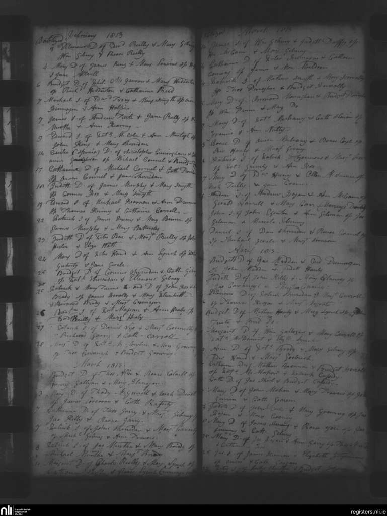 Oldcastle; County of Meath; Diocese of Meath. Baptisms, Feb. 1813 to Apr. 1813