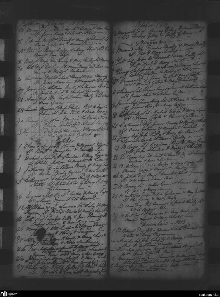Oldcastle; County of Meath; Diocese of Meath. Baptisms, Sep. 1813 to Dec. 1813