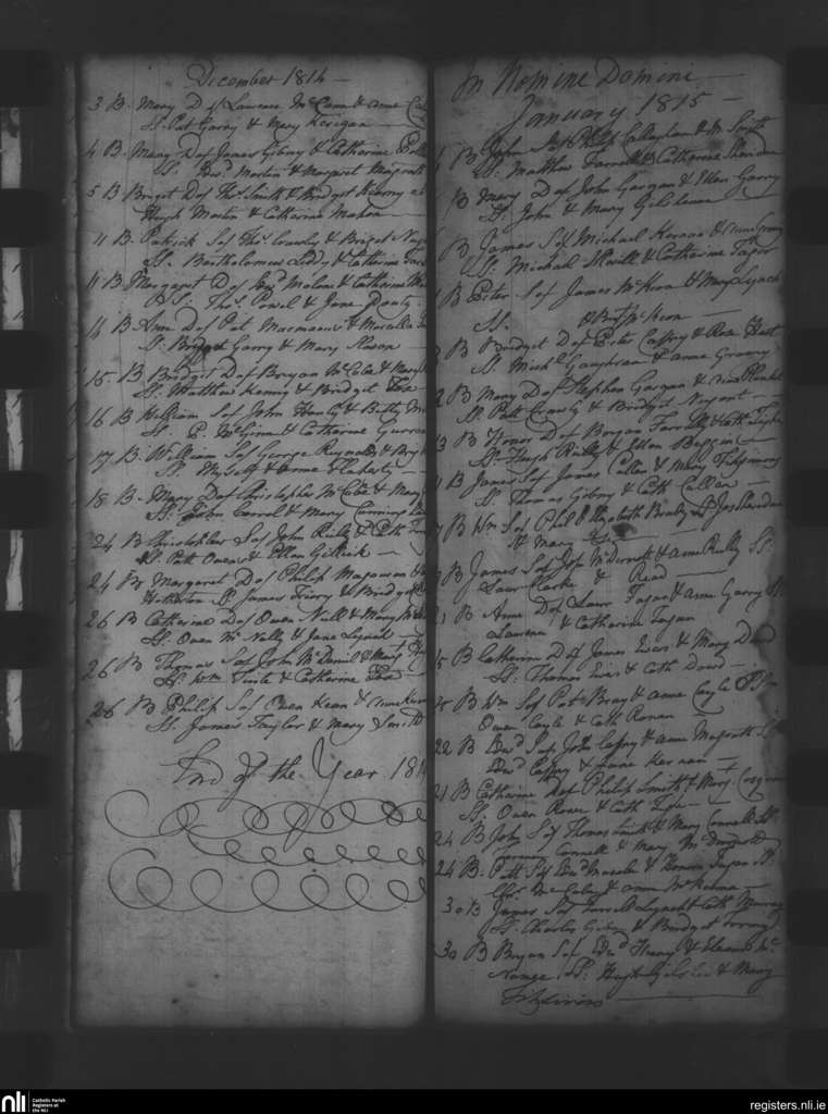 Oldcastle; County of Meath; Diocese of Meath. Baptisms, Dec. 1814 to Jan. 1815