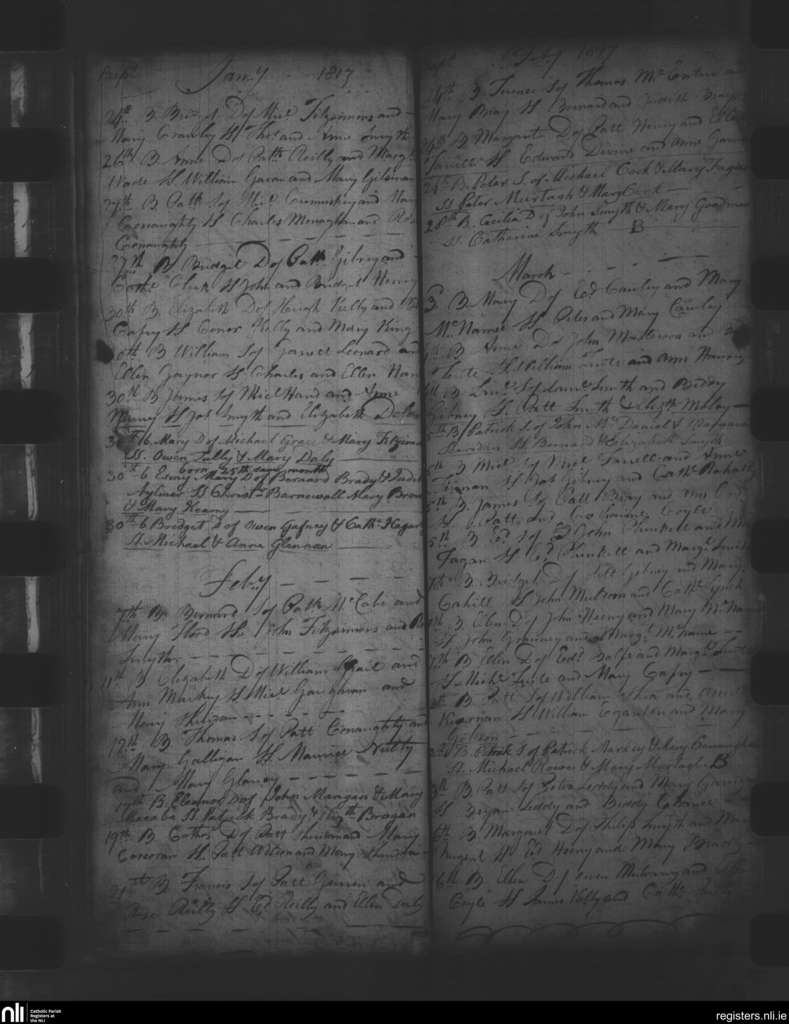 Oldcastle; County of Meath; Diocese of Meath. Baptisms, Jan. 1817 to Mar. 1817