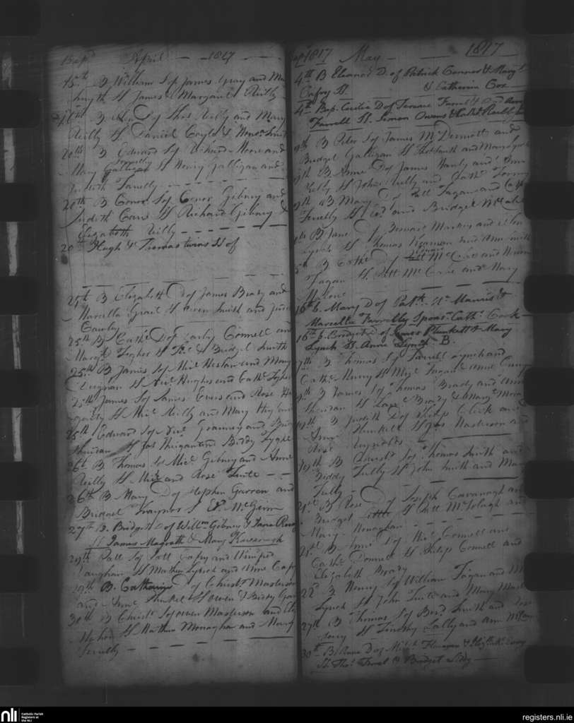 Oldcastle; County of Meath; Diocese of Meath. Baptisms, Apr. 1817 to May 1817