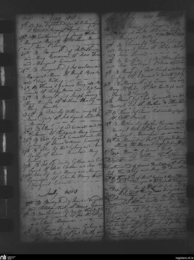 Oldcastle; County of Meath; Diocese of Meath. Baptisms, June 1818 to July 1818