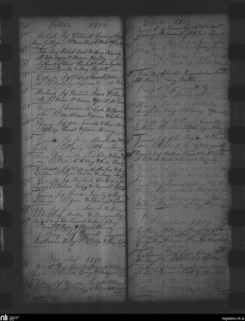 Oldcastle; County of Meath; Diocese of Meath. Baptisms, Oct. 1819 to Dec. 1819