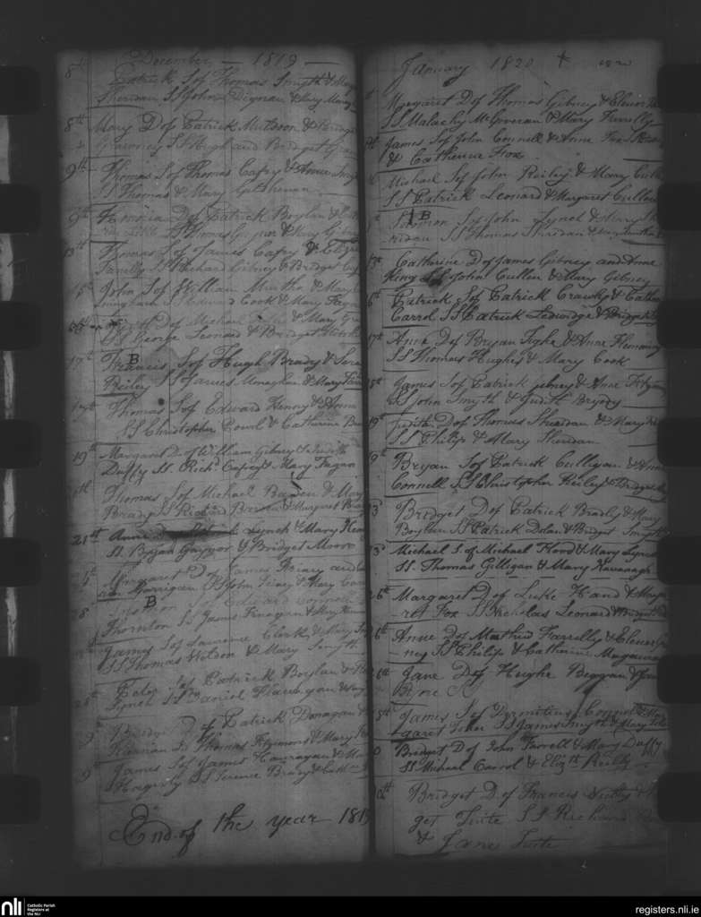 Oldcastle; County of Meath; Diocese of Meath. Baptisms, Dec. 1819 to Jan. 1820
