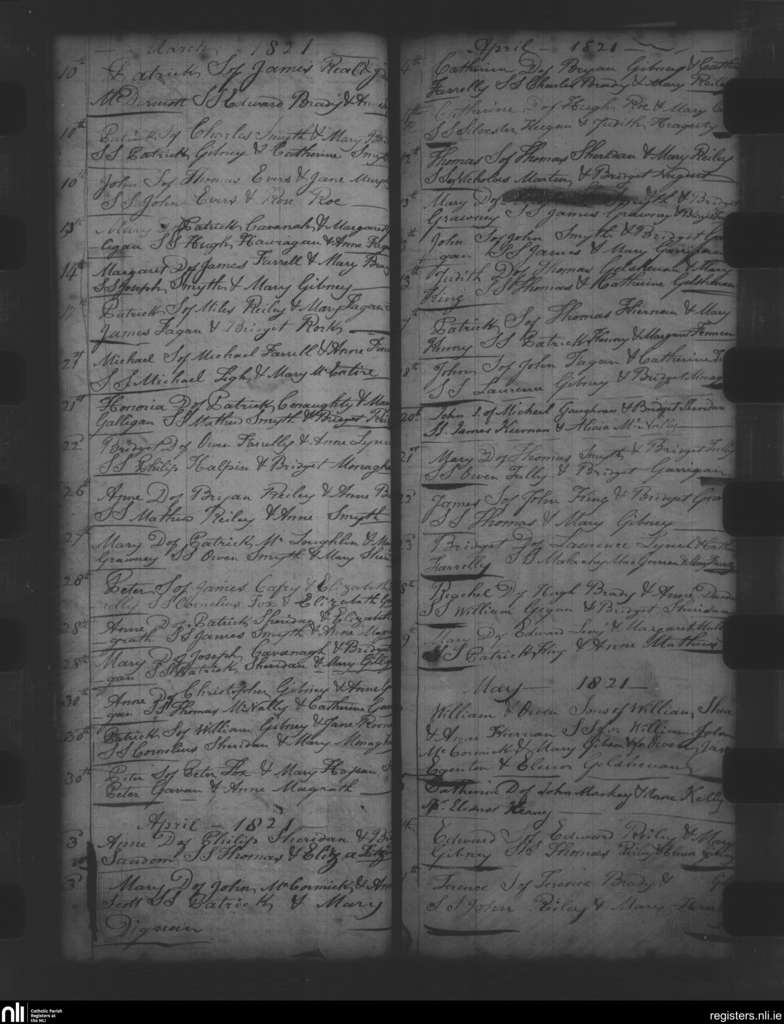 Oldcastle; County of Meath; Diocese of Meath. Baptisms, Mar. 1821 to May 1821