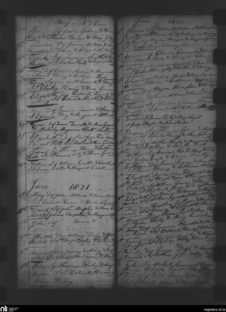 Oldcastle; County of Meath; Diocese of Meath. Baptisms, May 1821 to June 1821