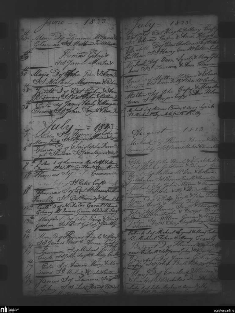 Oldcastle; County of Meath; Diocese of Meath. Baptisms, June 1823 to Aug. 1823