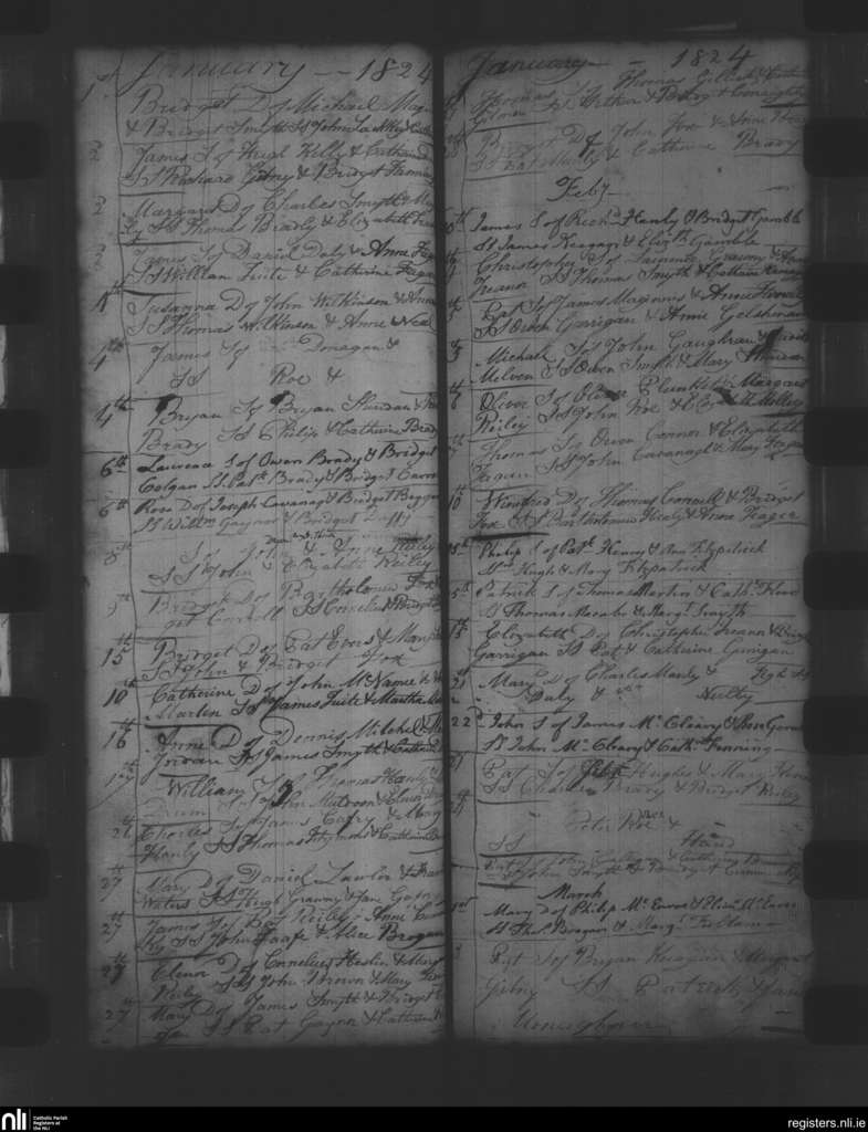 Oldcastle; County of Meath; Diocese of Meath. Baptisms, Jan. 1824 to Mar. 1824