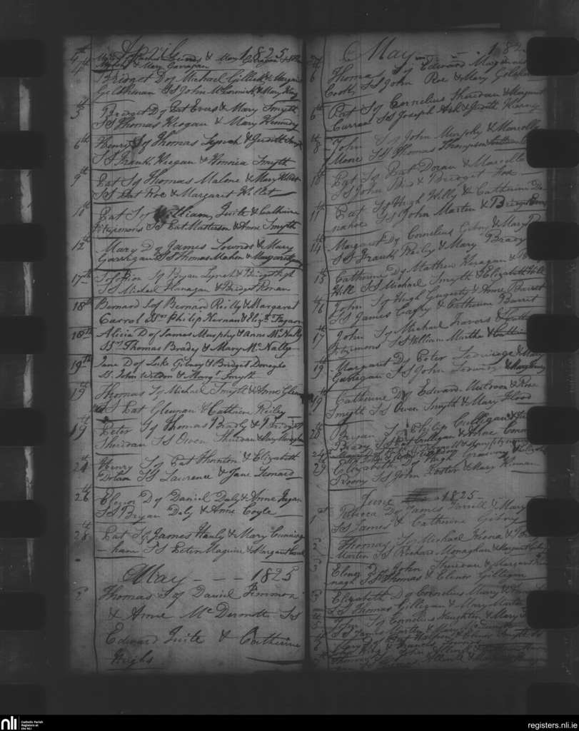 Oldcastle; County of Meath; Diocese of Meath. Baptisms, Apr. 1825 to June 1825