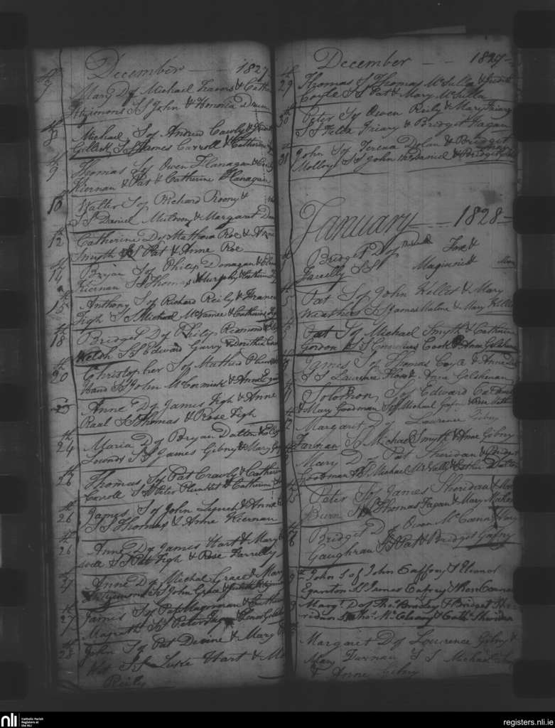 Oldcastle; County of Meath; Diocese of Meath. Baptisms, Dec. 1827 to Jan. 1828