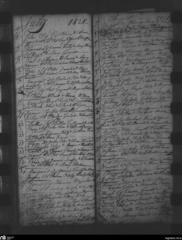 Oldcastle; County of Meath; Diocese of Meath. Baptisms, July 1828 to Aug. 1828