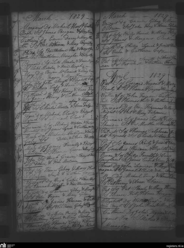 Oldcastle; County of Meath; Diocese of Meath. Baptisms, Mar. 1829 to Apr. 1829