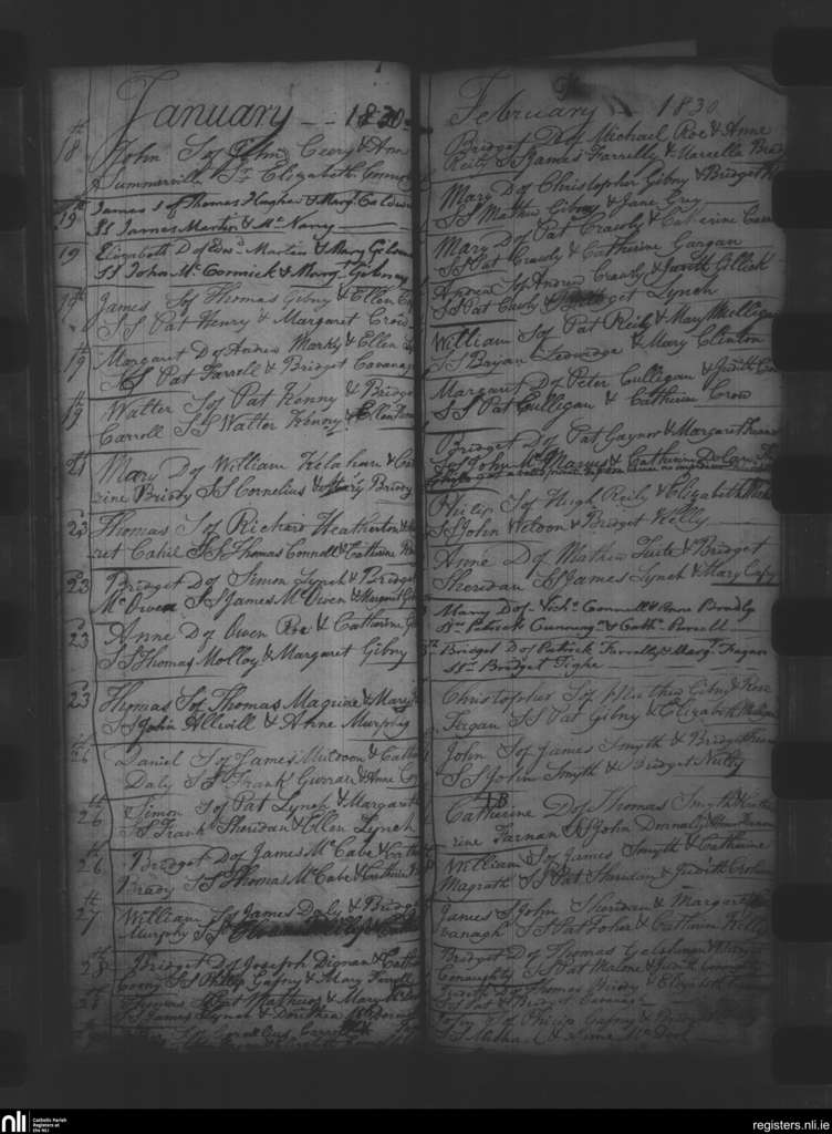 Oldcastle; County of Meath; Diocese of Meath. Baptisms, Jan. 1830 to Feb. 1830