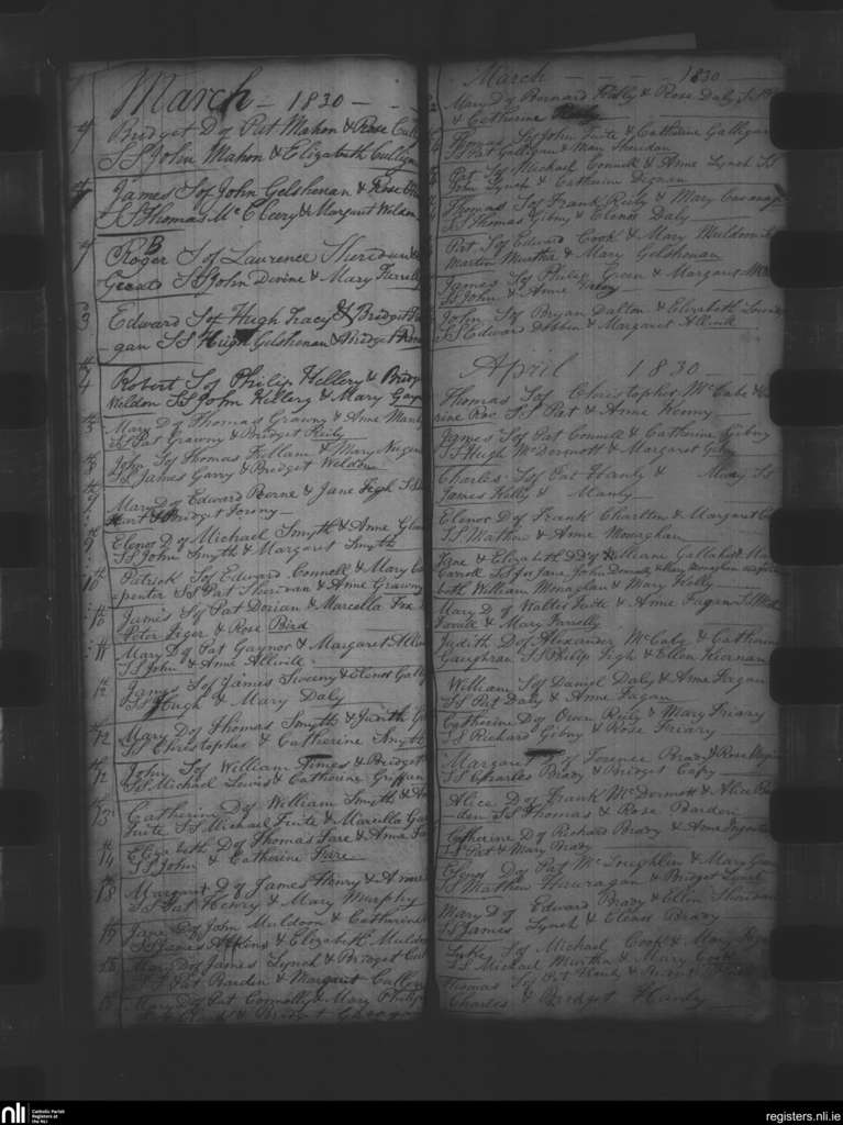 Oldcastle; County of Meath; Diocese of Meath. Baptisms, Mar. 1830 to Apr. 1830