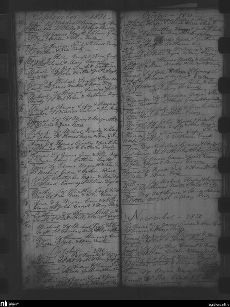 Oldcastle; County of Meath; Diocese of Meath. Baptisms, Sep. 1830 to Nov. 1830