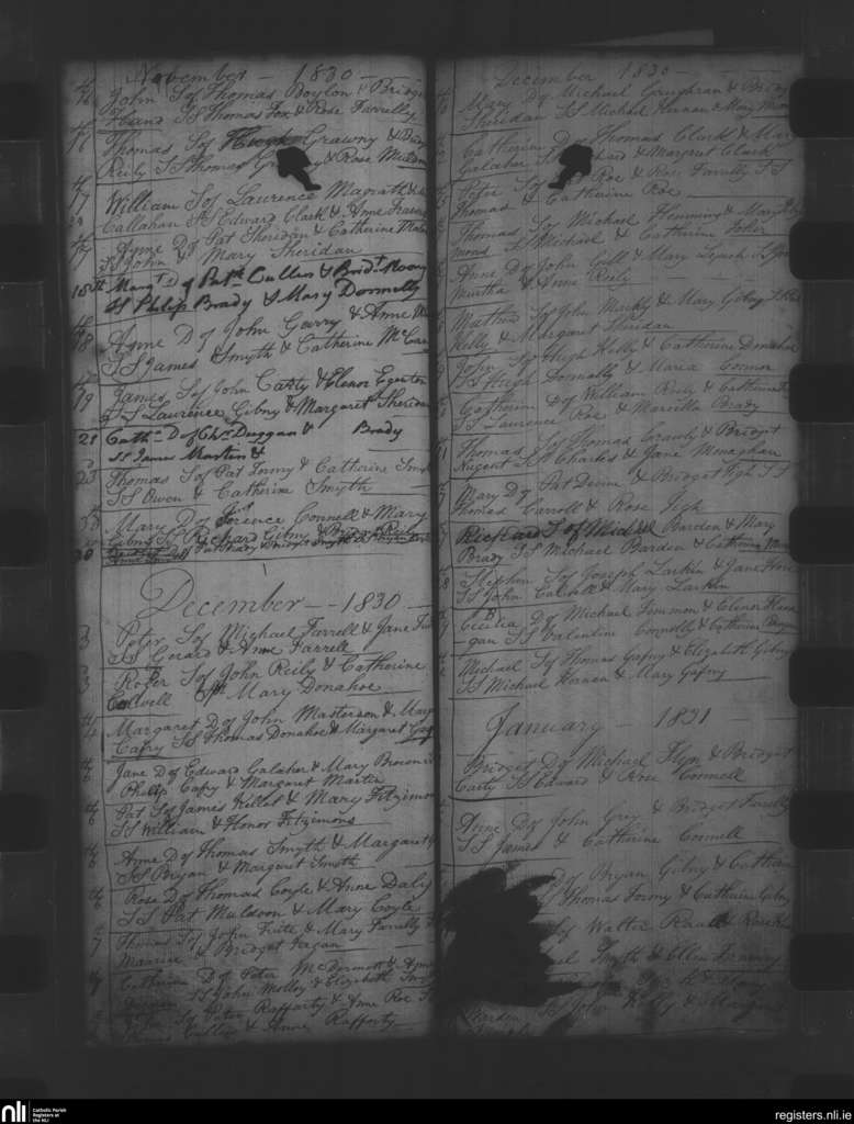 Oldcastle; County of Meath; Diocese of Meath. Baptisms, Nov. 1830 to Jan. 1831