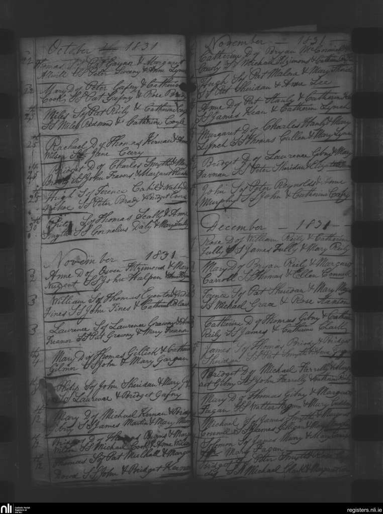 Oldcastle; County of Meath; Diocese of Meath. Baptisms, Oct. 1831 to Dec. 1831