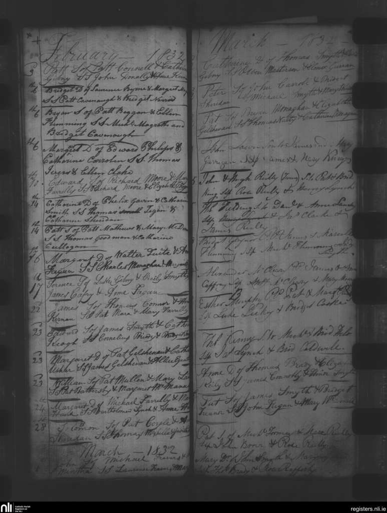 Oldcastle; County of Meath; Diocese of Meath. Baptisms, Feb. 1832 to Mar. 1832