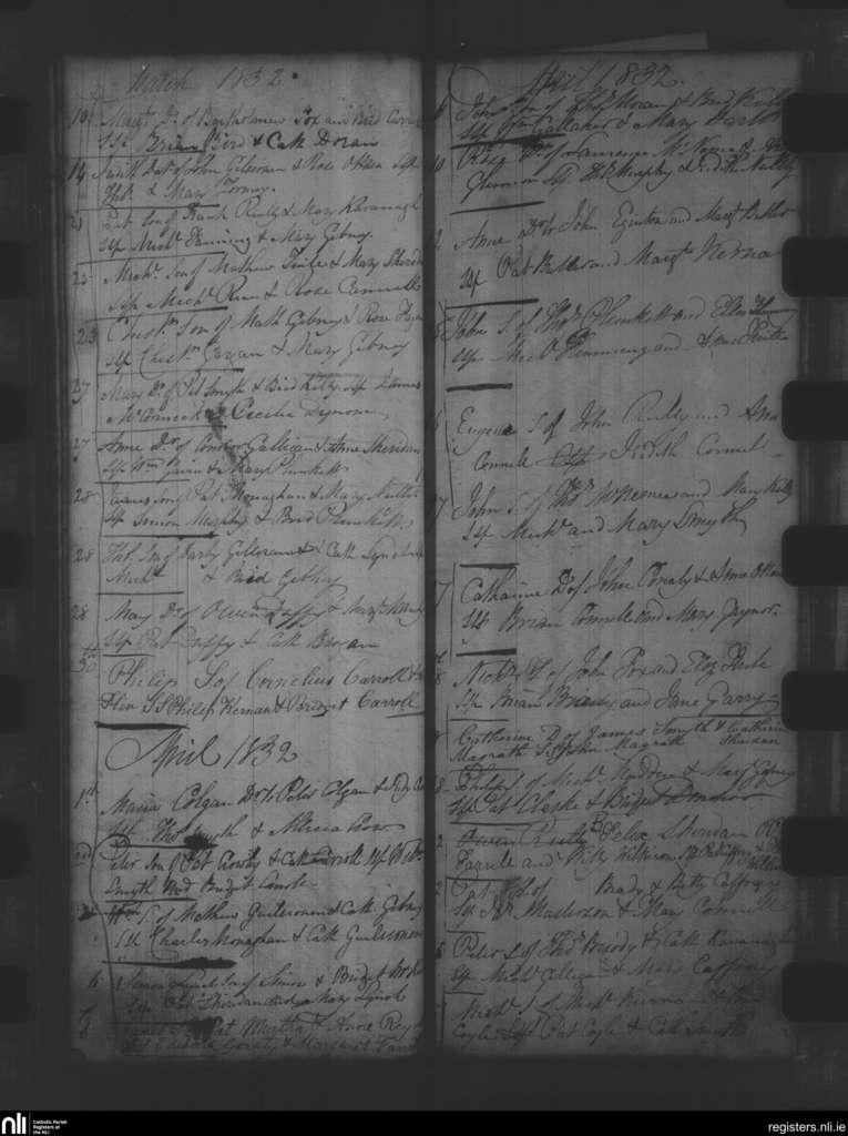 Oldcastle; County of Meath; Diocese of Meath. Baptisms, Mar. 1832 to Apr. 1832