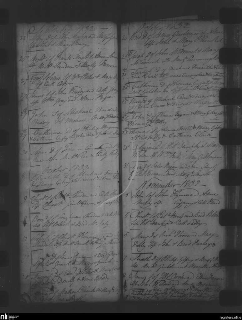 Oldcastle; County of Meath; Diocese of Meath. Baptisms, Sep. 1832 to Nov. 1832