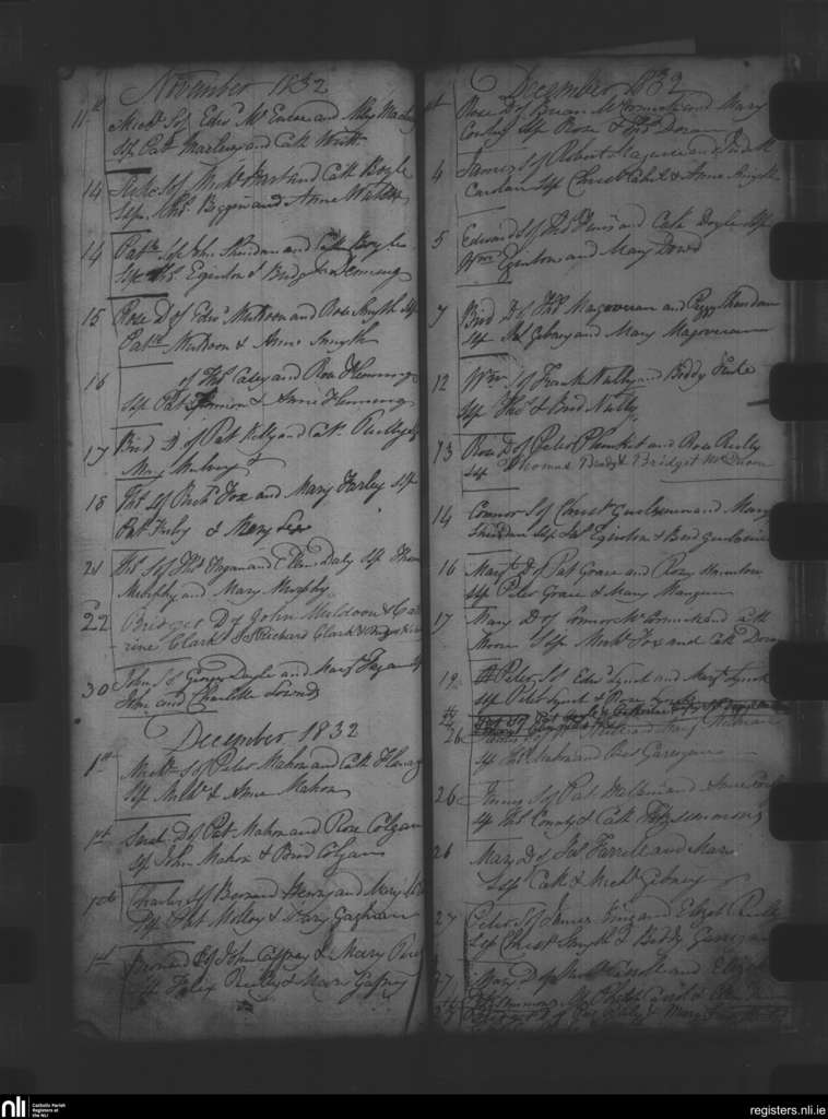 Oldcastle; County of Meath; Diocese of Meath. Baptisms, Nov. 1832 to Dec. 1832