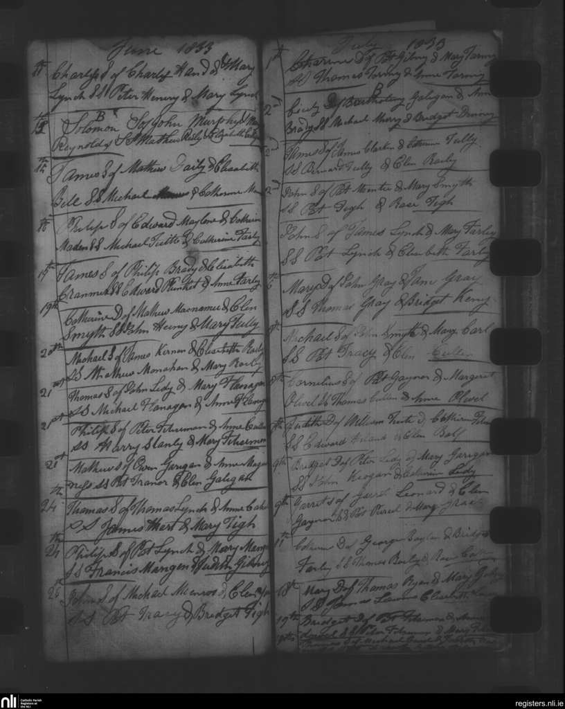 Oldcastle; County of Meath; Diocese of Meath. Baptisms, June 1833 to July 1833