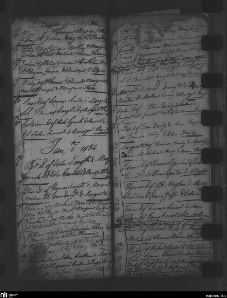 Oldcastle; County of Meath; Diocese of Meath. Baptisms, Dec. 1833 to Jan. 1834