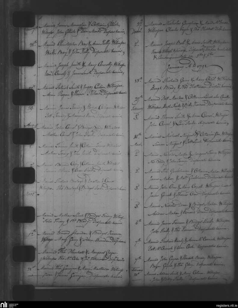 Oldcastle; County of Meath; Diocese of Meath. Marriages, July 1790 to Mar. 1791