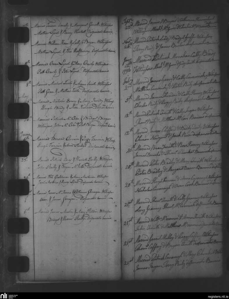 Oldcastle; County of Meath; Diocese of Meath. Marriages, Feb. 1791 to Feb. 1792
