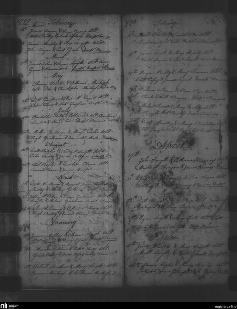 Oldcastle; County of Meath; Diocese of Meath. Marriages, Feb. 1797 to June 1798