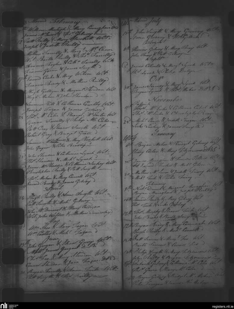 Oldcastle; County of Meath; Diocese of Meath. Marriages, Feb. 1803 to Feb. 1804
