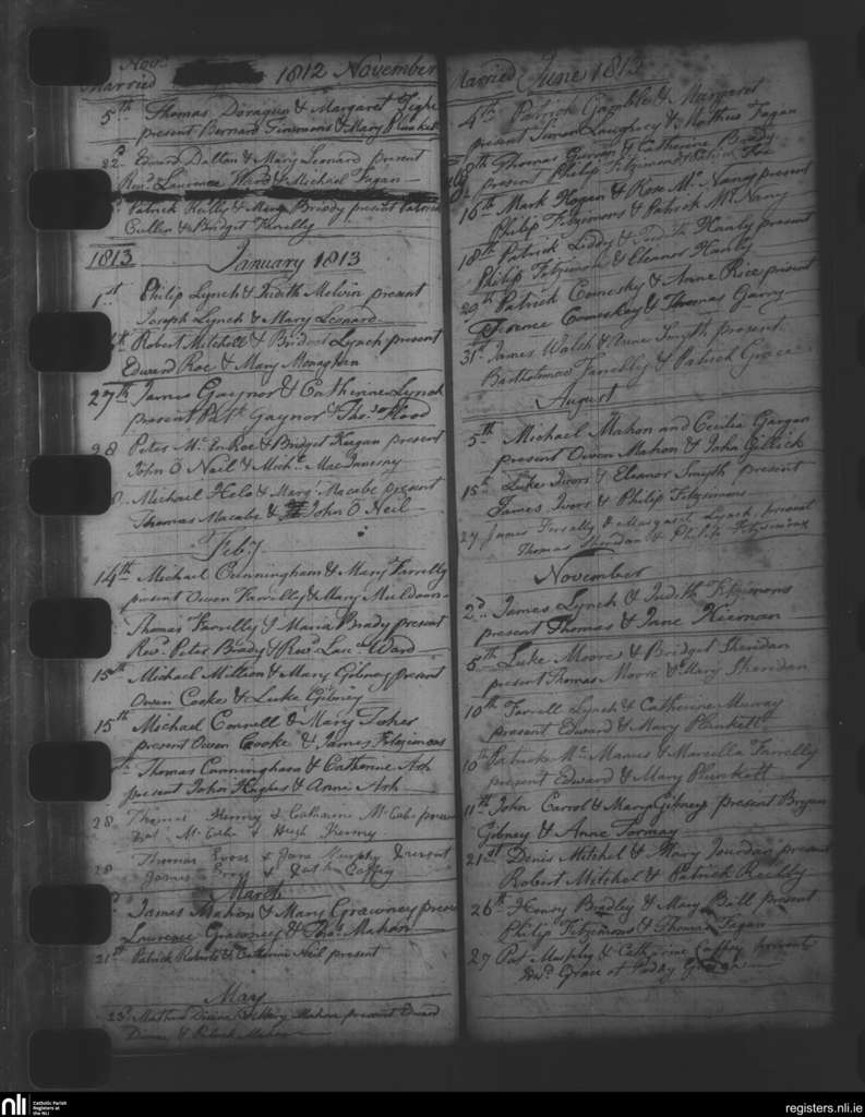 Oldcastle; County of Meath; Diocese of Meath. Marriages, Nov. 1812 to Nov. 1813