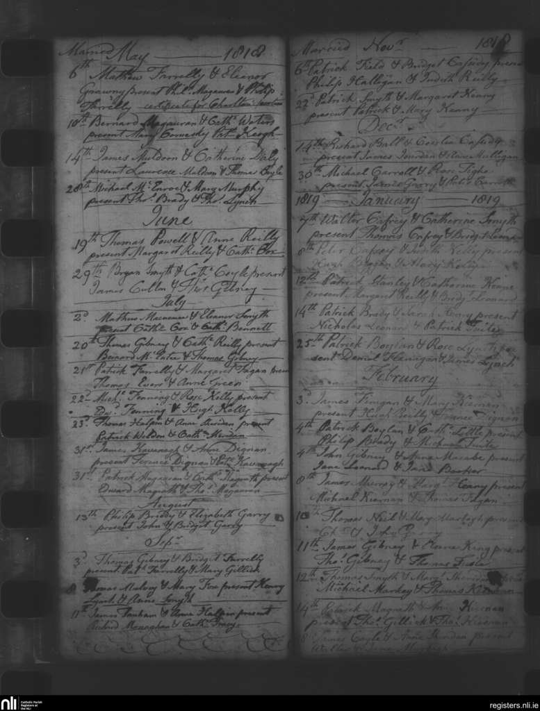 Oldcastle; County of Meath; Diocese of Meath. Marriages, May 1818 to Feb. 1819