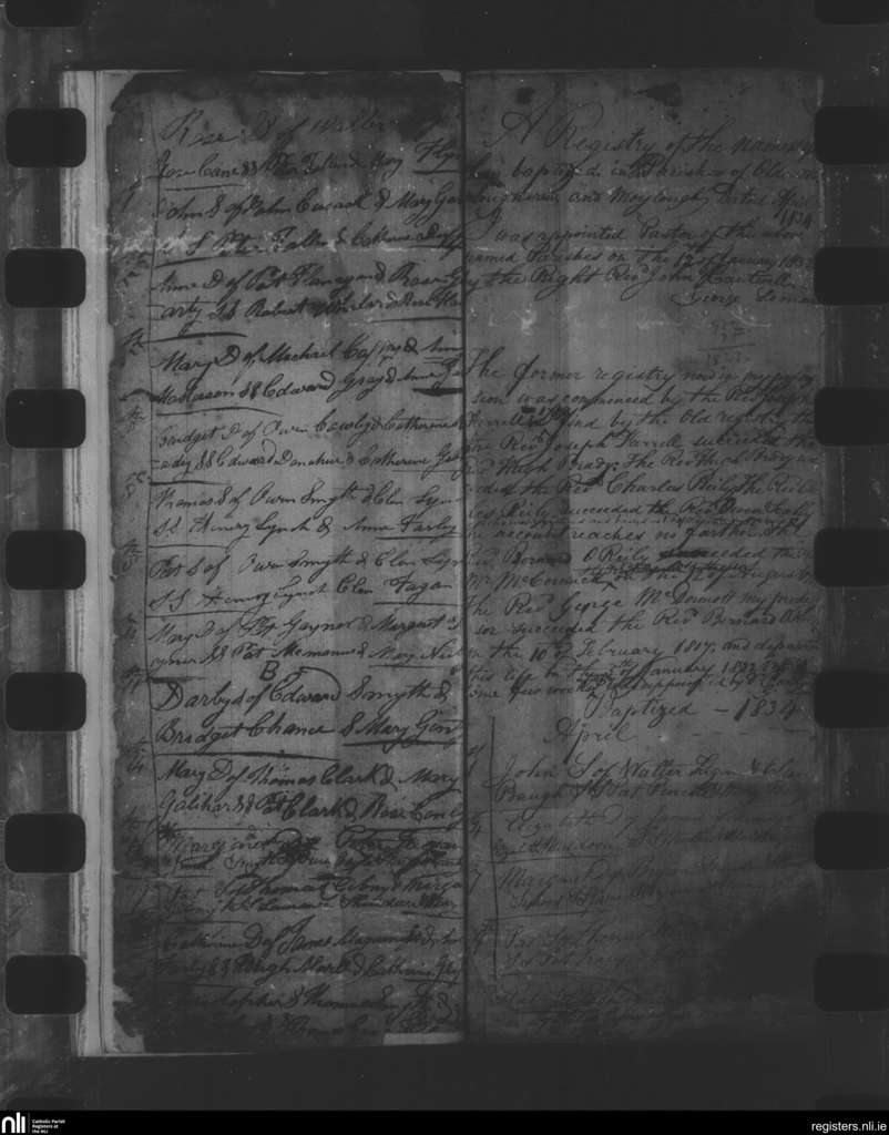 Oldcastle; County of Meath; Diocese of Meath. Baptisms, Feb. 1834 to Apr. 1834