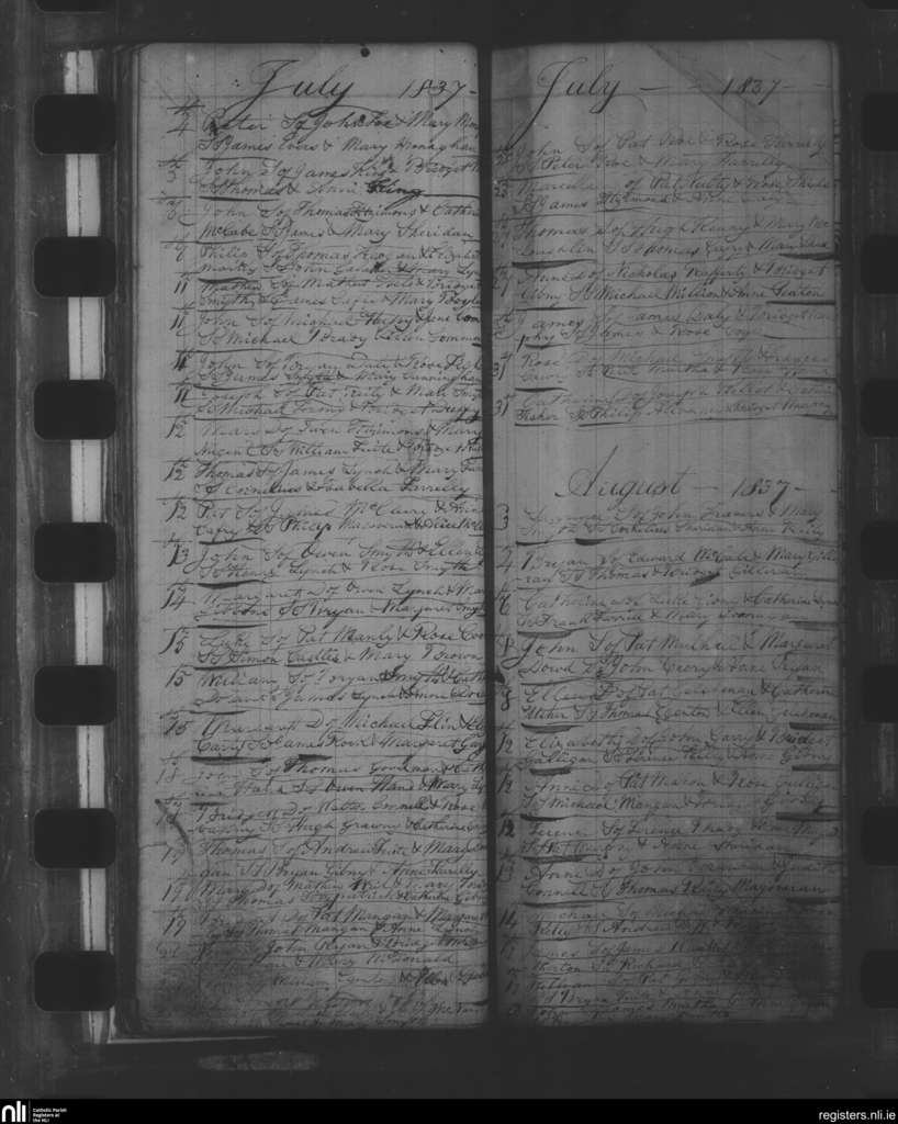 Oldcastle; County of Meath; Diocese of Meath. Baptisms, July 1837 to Aug. 1837