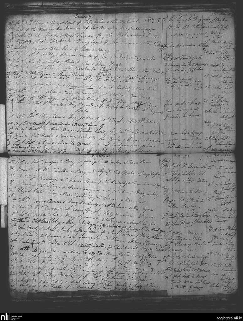 Milltown; County of Westmeath; Diocese of Meath. Baptisms, Marriages, Deaths, Mar. 1835 to May 1835