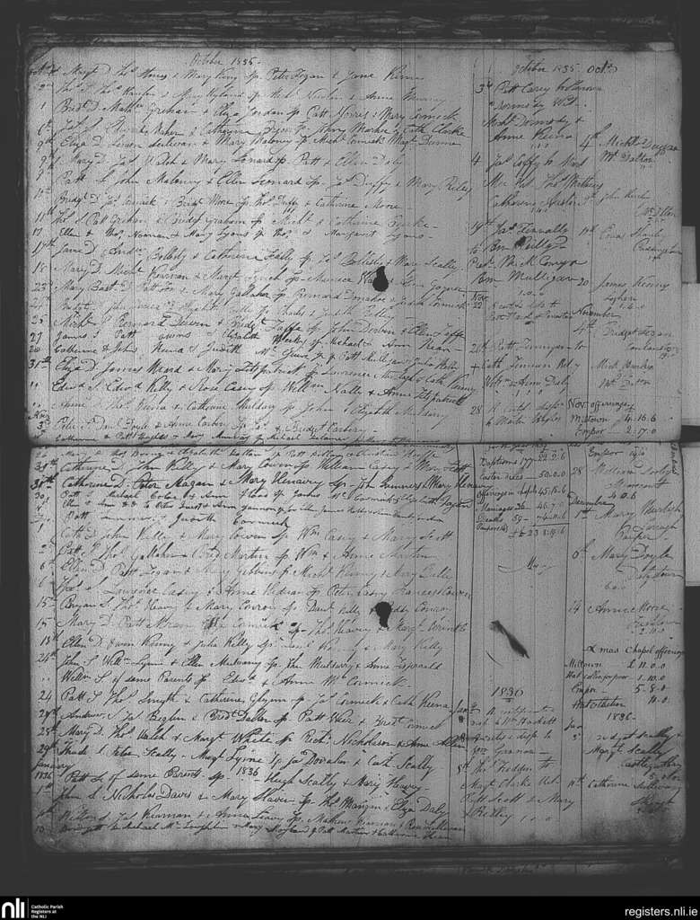 Milltown; County of Westmeath; Diocese of Meath. Baptisms, Marriages, Deaths, Oct. 1835 to Jan. 1836