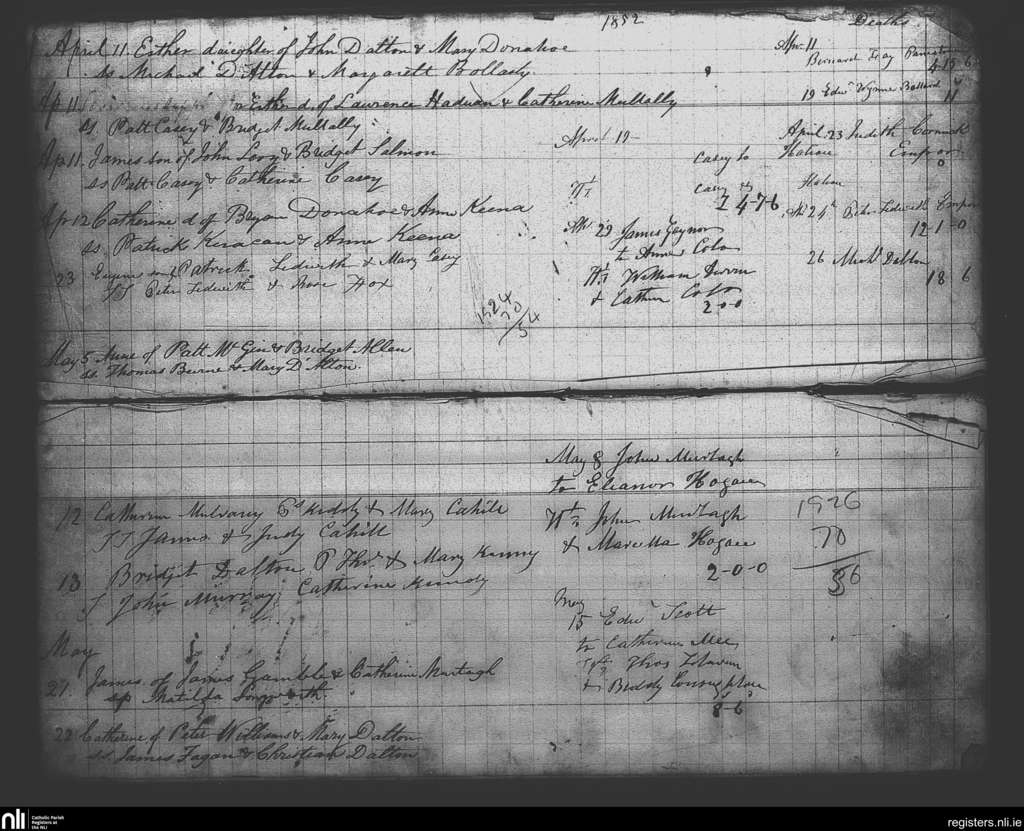Milltown; County of Westmeath; Diocese of Meath. Baptisms, Marriages, Deaths, Apr. 1842 to May 1852