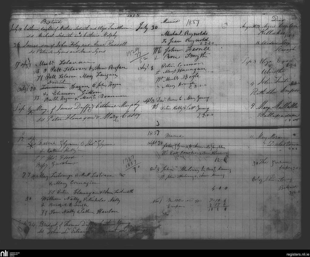 Milltown; County of Westmeath; Diocese of Meath. Baptisms, Marriages, Deaths, July 1857 to Nov. 1857