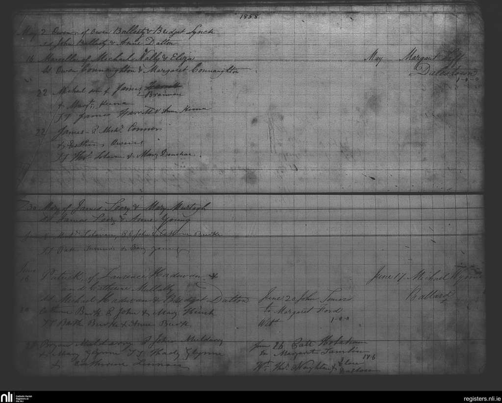 Milltown; County of Westmeath; Diocese of Meath. Baptisms, Marriages, Deaths, May 1858 to June 1858