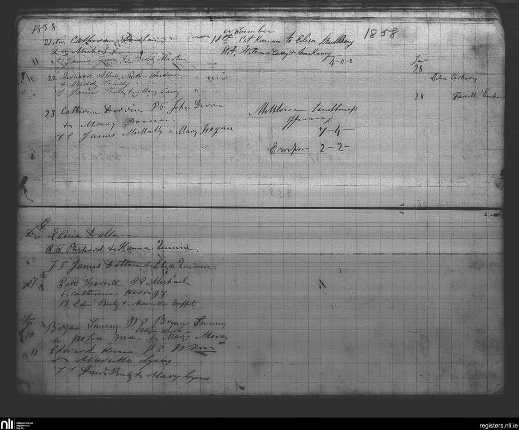 Milltown; County of Westmeath; Diocese of Meath. Baptisms, Marriages, Deaths, Nov. 1858 to Jan. 1859