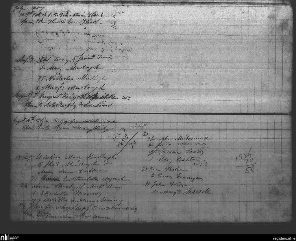 Milltown; County of Westmeath; Diocese of Meath. Baptisms, Marriages, July 1859 to Aug. 1859