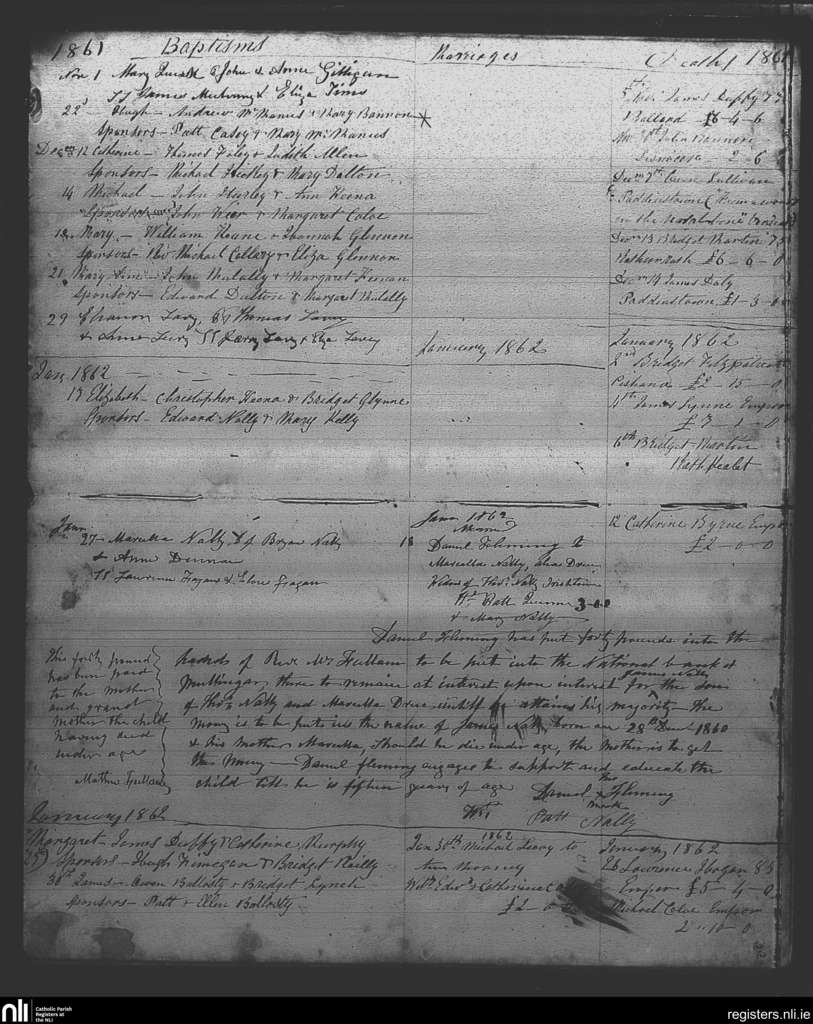 Milltown; County of Westmeath; Diocese of Meath. Baptisms, Marriages, Deaths, Nov. 1861 to Jan. 1862