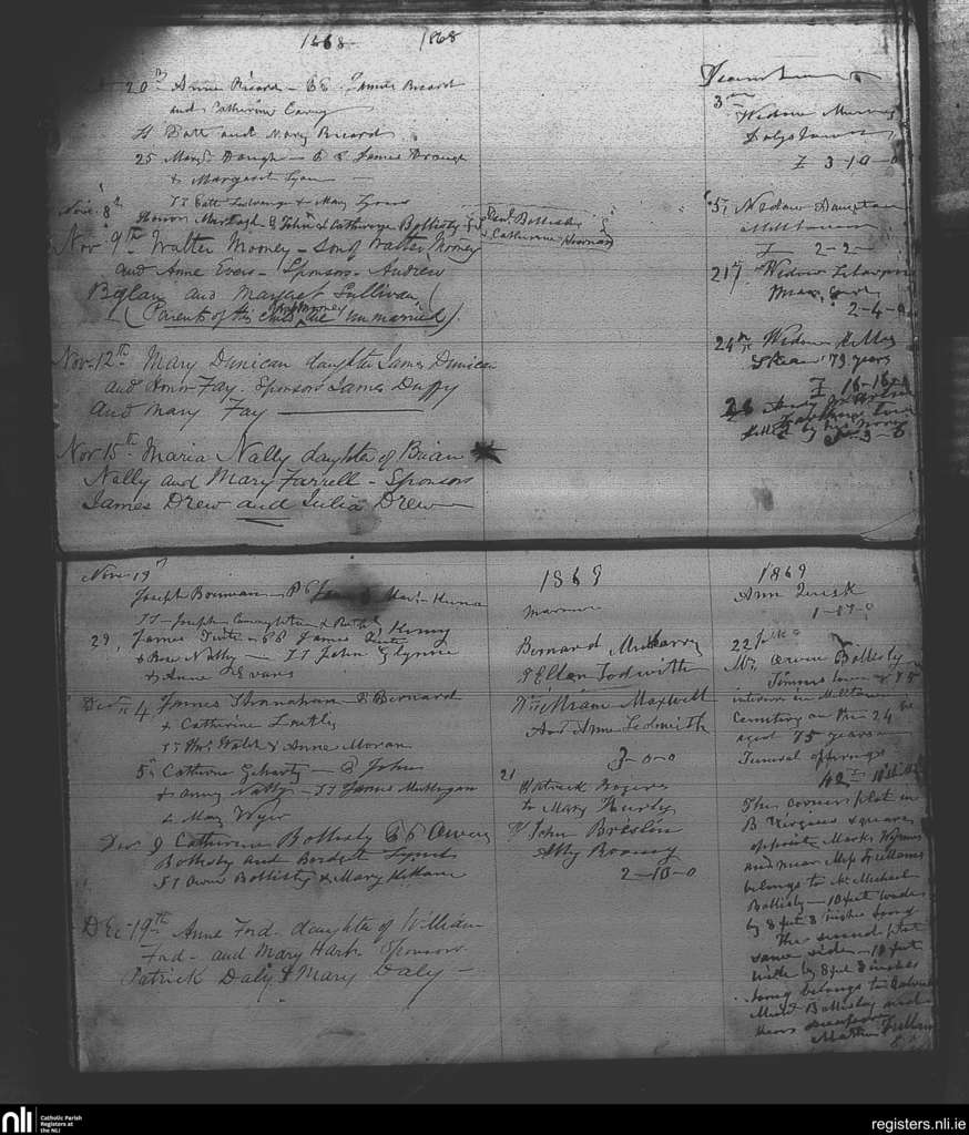 Milltown; County of Westmeath; Diocese of Meath. Baptisms, Marriages, Deaths, Oct. 1868 to Dec. 1869