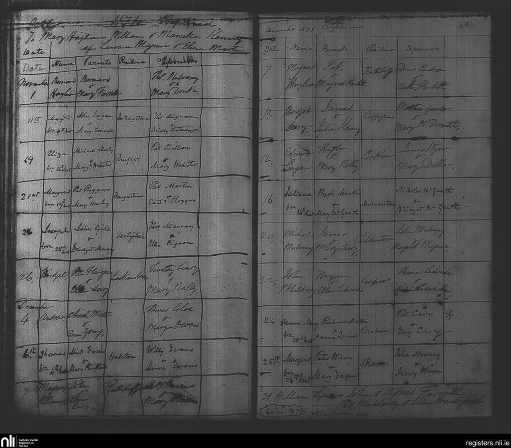 Milltown; County of Westmeath; Diocese of Meath. Baptisms, Oct. 1871 to Dec. 1871